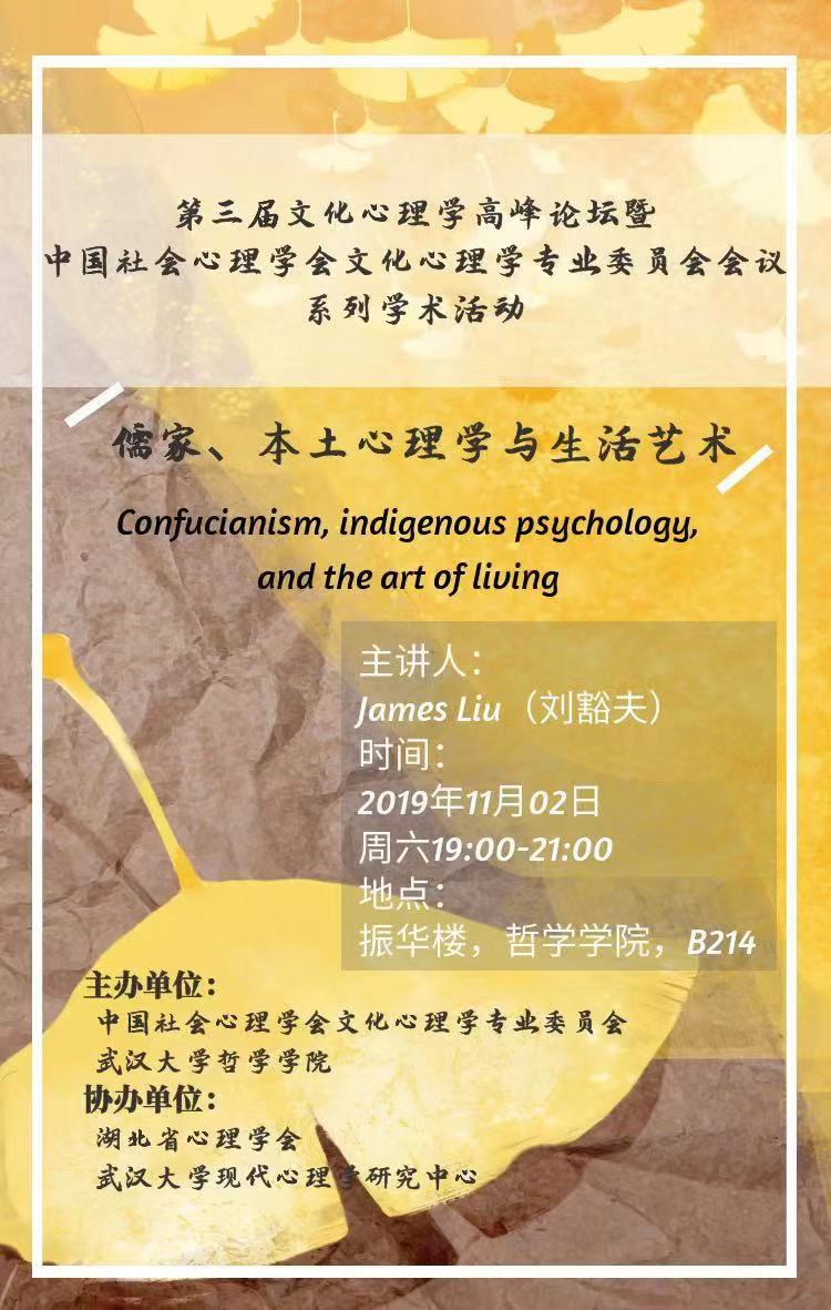【11月2日】第三届文化心理学高峰论坛——儒家、本土心理学与生活艺术
