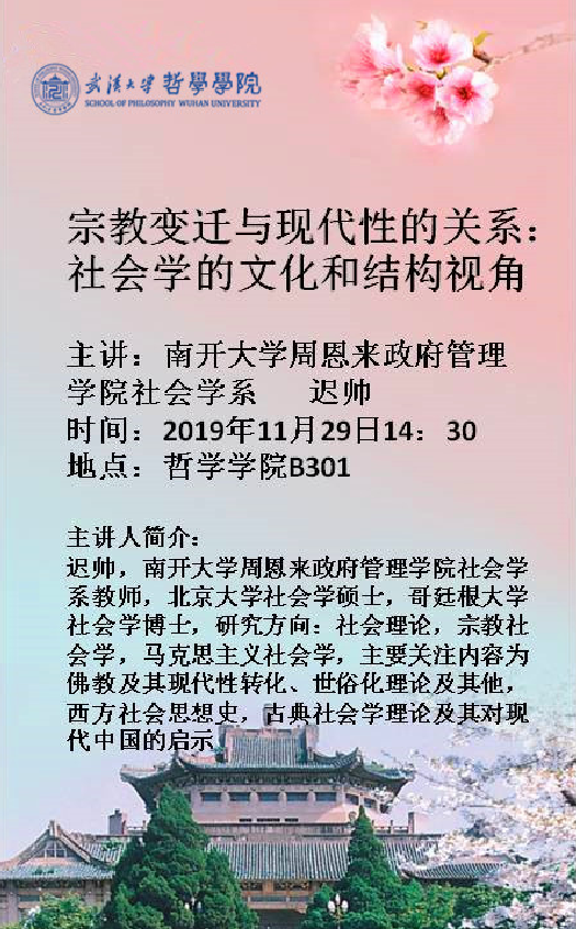 【11月29日】宗教变迁与现代性的关系:社会学的文化和结构视角