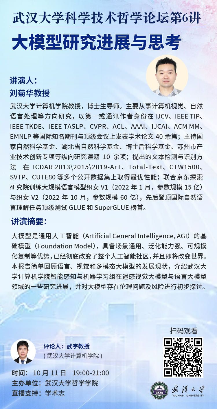 【10月11日】奈飞 科学技术哲学论坛第6讲:大模型研究进展与思考