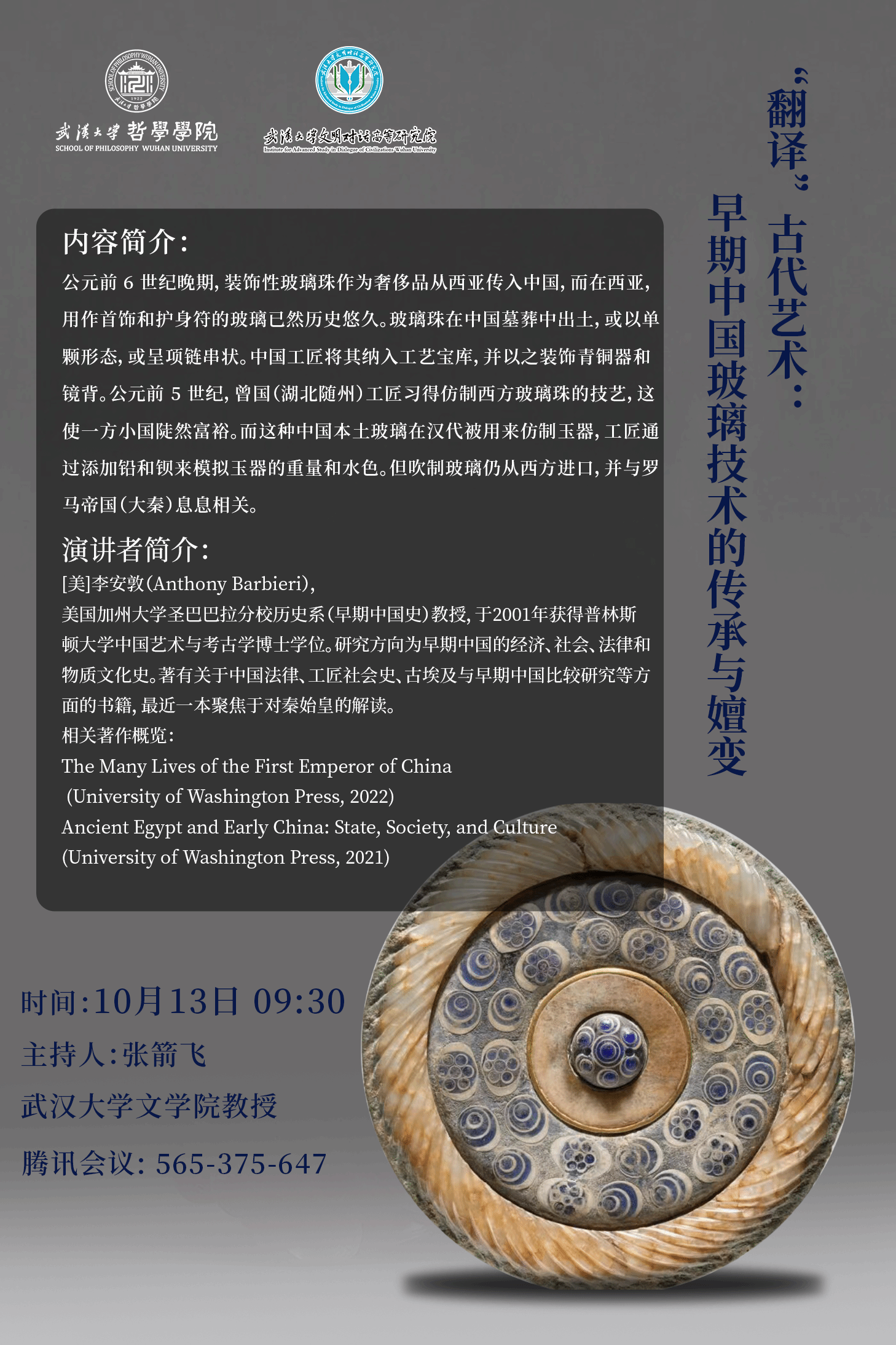 【10月13日】“翻译”古代艺术:早期中国玻璃技术的传承与嬗变