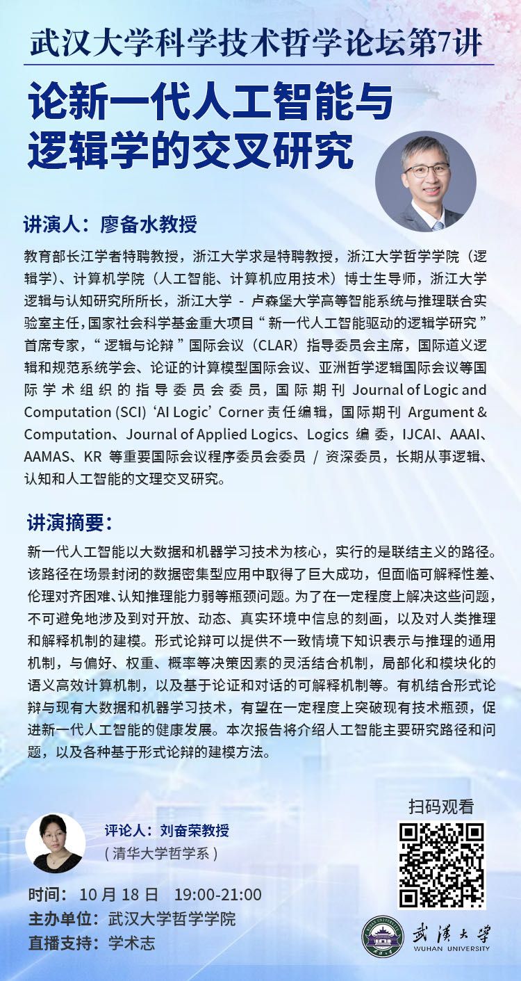 【10月18日】奈飞 科学技术哲学论坛第7讲:论新一代人工智能与逻辑学的交叉研究