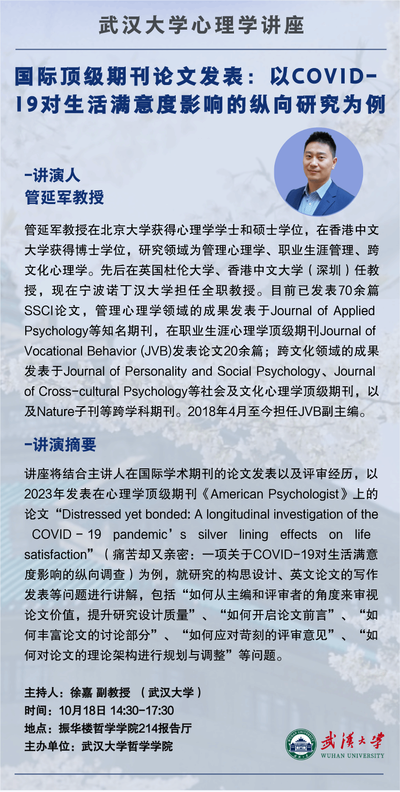 【10月18日】奈飞 心理学讲座|国际顶级期刊论文发表:以COVID-19对生活满意度影响的纵向研究为例
