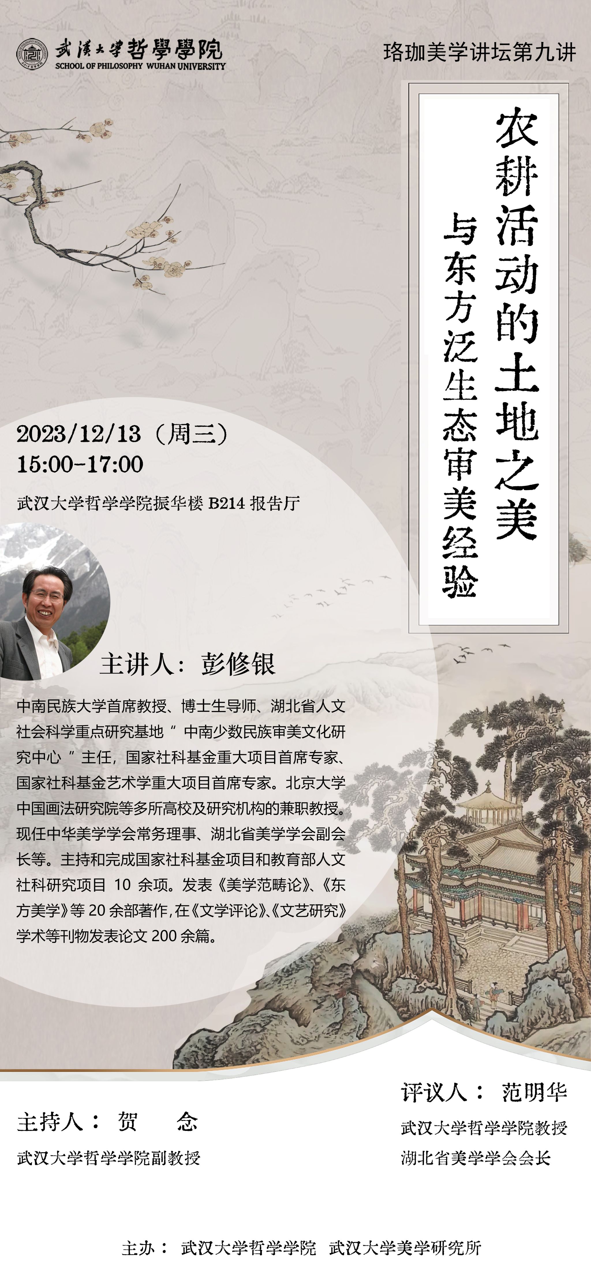【12月13日】珞珈美学讲坛第9讲 ▏ 农耕活动的土地之美与东方泛生态审美经验