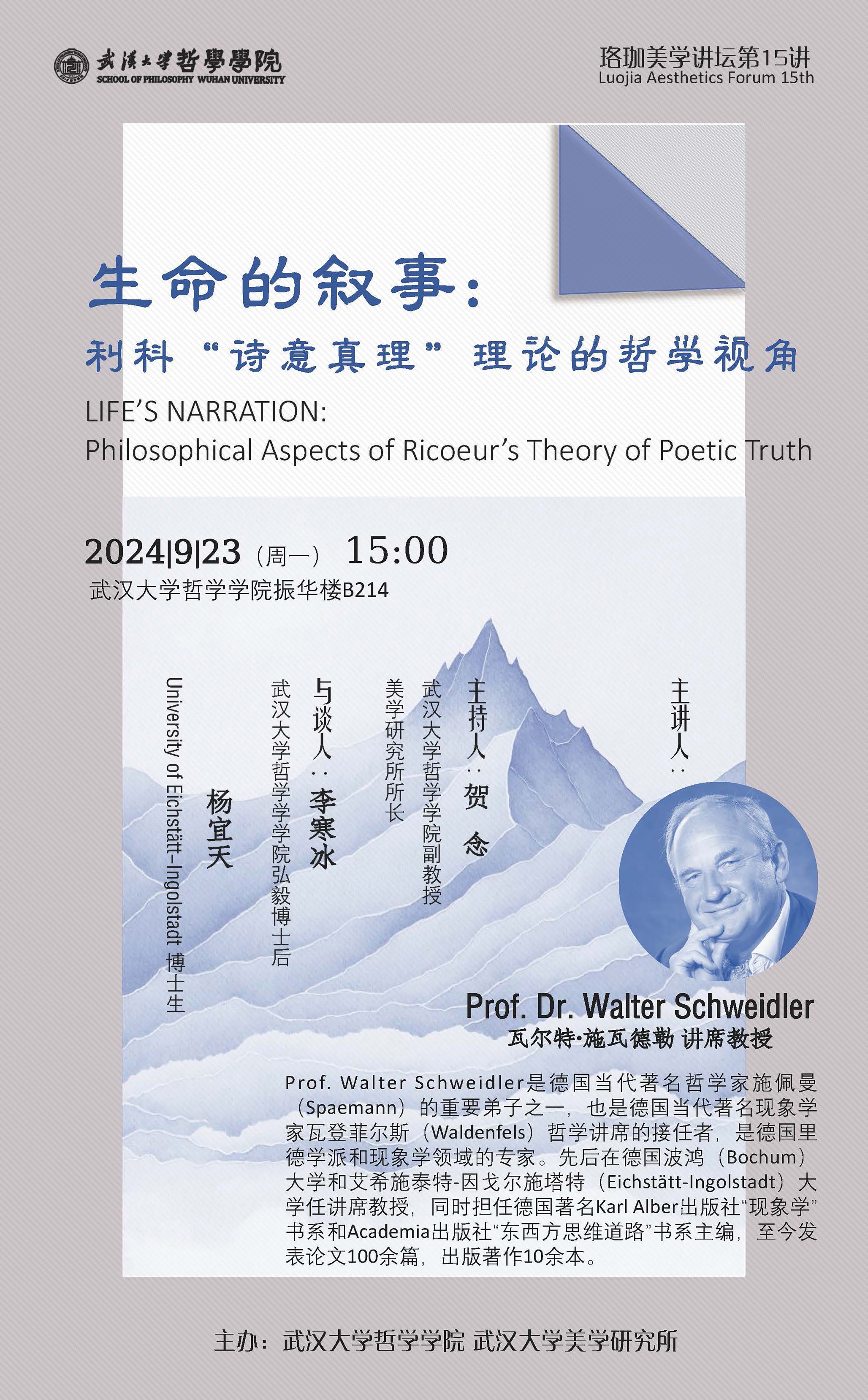 【9月23日】珞珈美学讲坛第15讲|生命的叙事:利科“诗意真理”理论的哲学视角