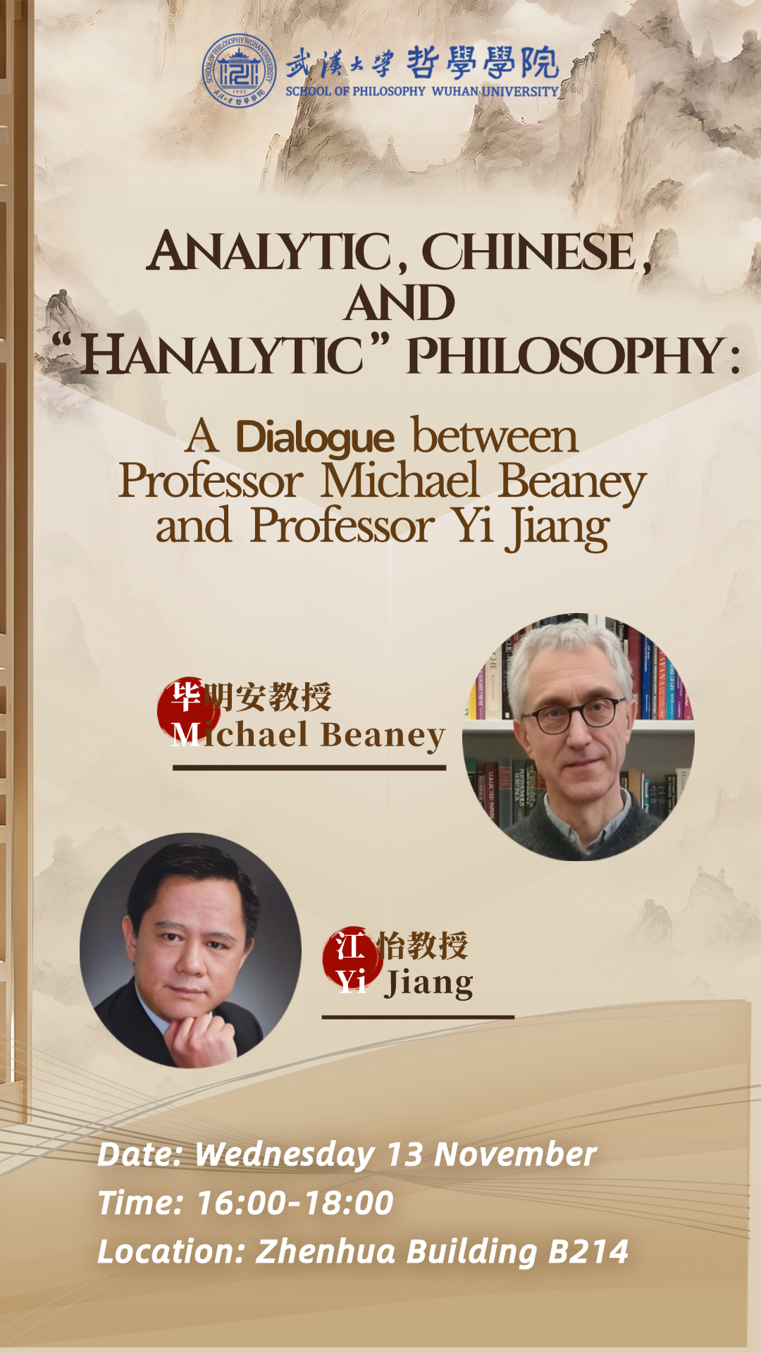 【11月13日】Analytic, Chinese, and "Hanalytic" Philosophy: A Dialogue between Professor Michael Beaney and Professor Yi Jiang