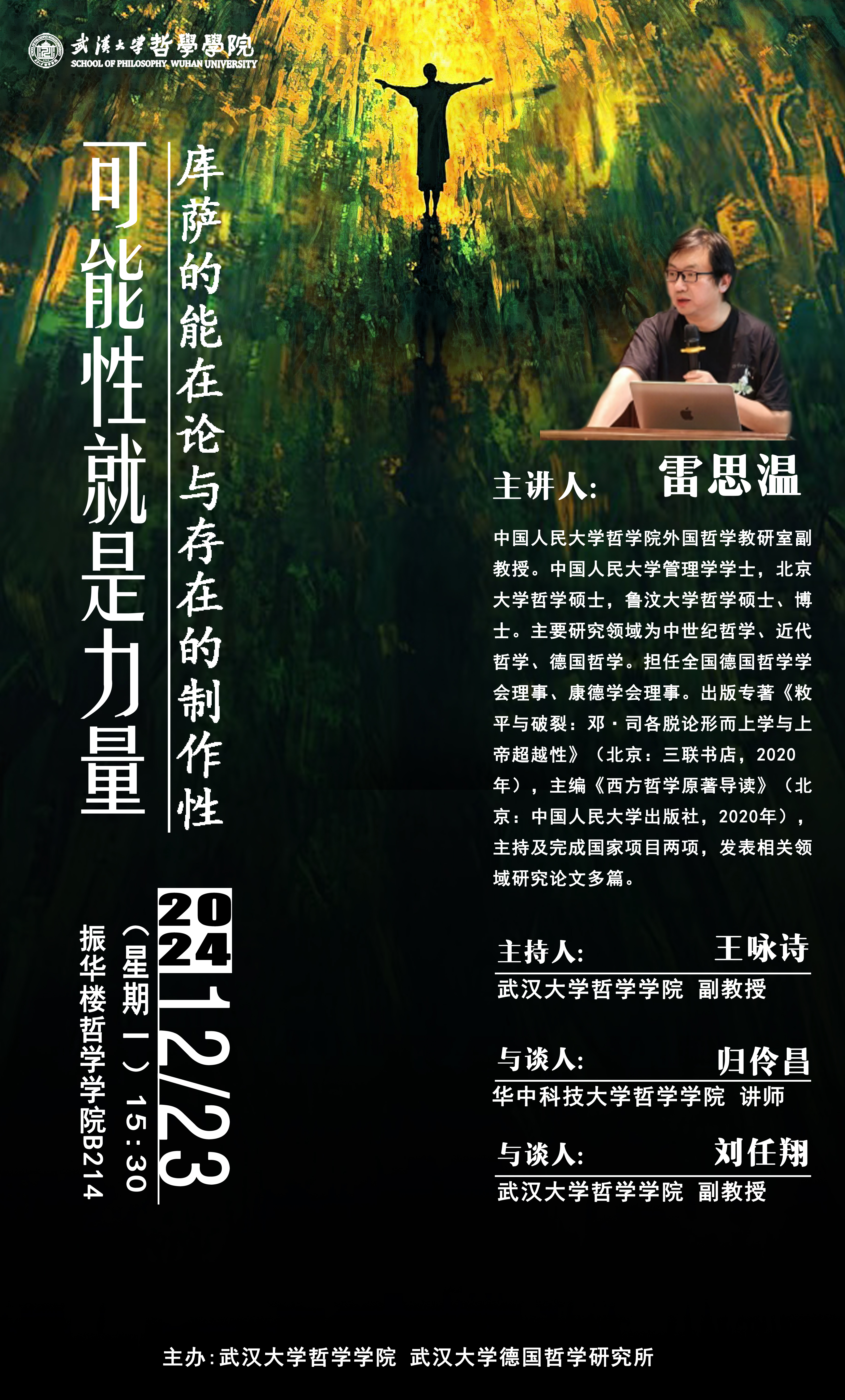 【12月23日】讲座预告 | 雷思温:可能性就是力量:库萨的能在论与存在的制作性