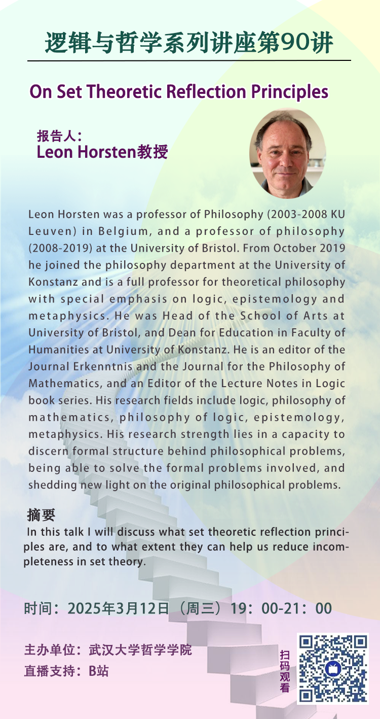 【3月12日】逻辑与哲学系列讲座第90讲| Leon Horsten:On Set Theoretic Reflection Principles