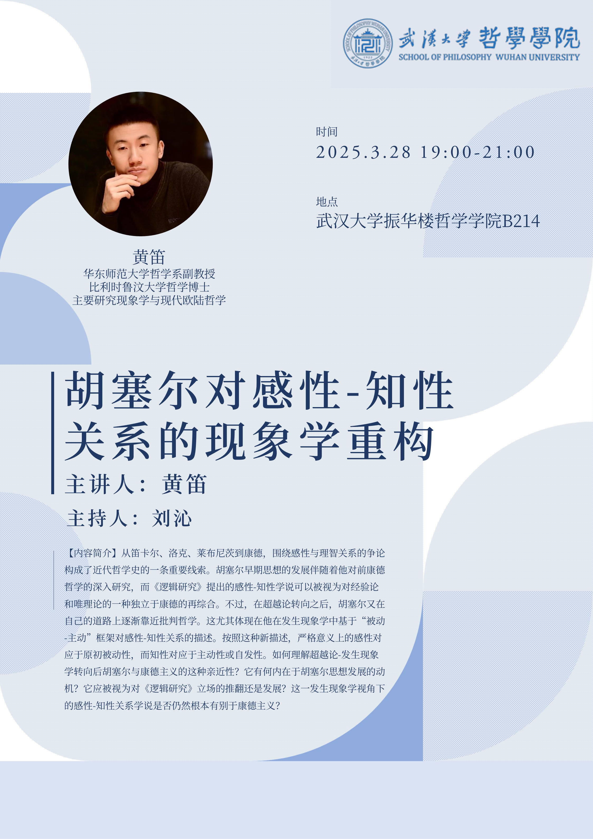 【3月28日】讲座预告 | 黄笛:胡塞尔对感性—知性关系的现象学重构