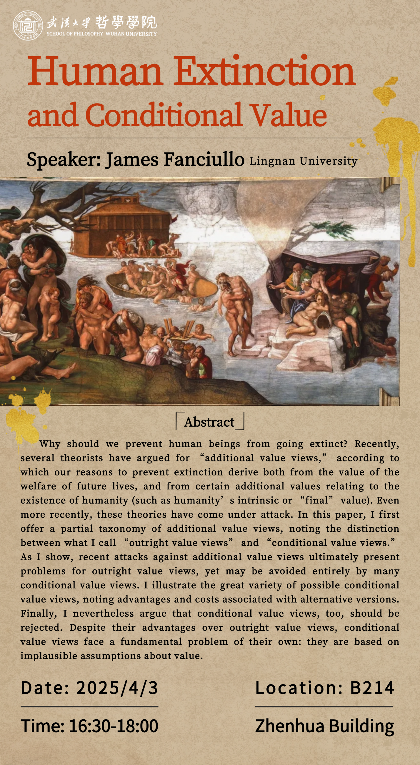 【4月3日】讲座预告 | Human Extinction and Conditional Value