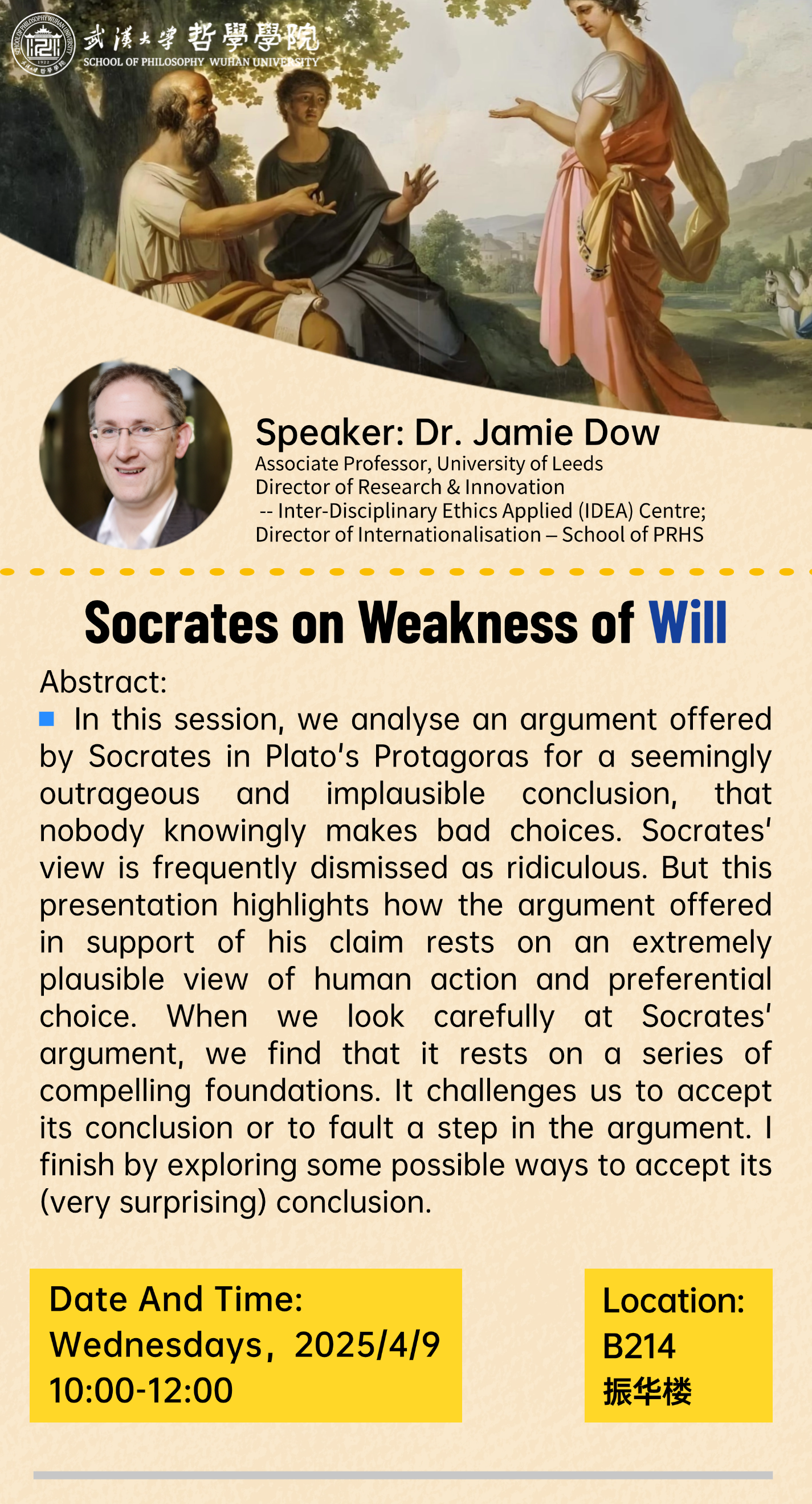 【4月9日】讲座预告 | Socrates on Weakness of Will