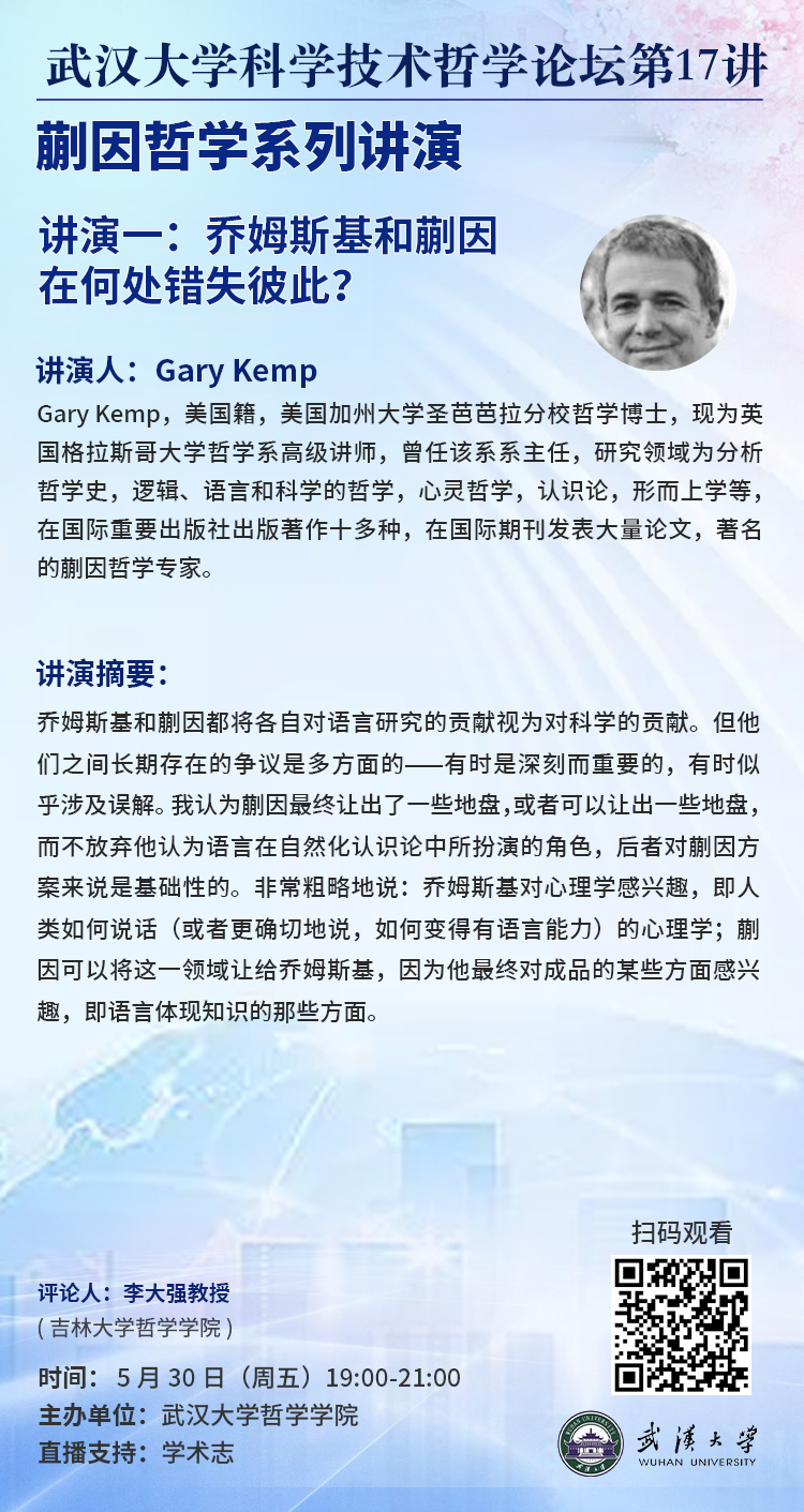 【5月30日】奈飞 科学技术哲学论坛第17讲预告 ▏蒯因哲学系列讲演一:乔姆斯基和蒯因在何处错失彼此?