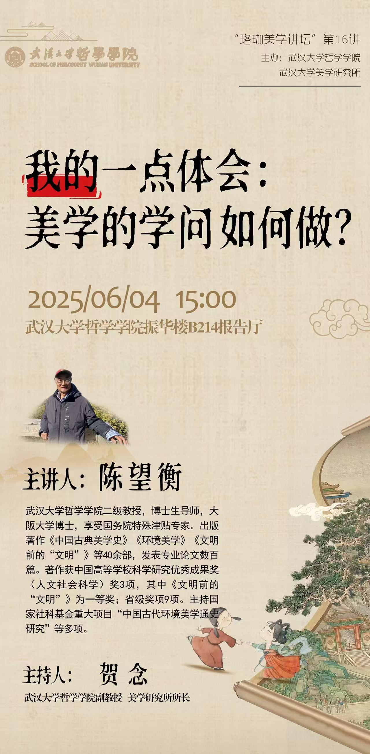 【6月4日】珞珈美学讲坛第16讲预告 |陈望衡:我的一点体会:美学的学问如何做?