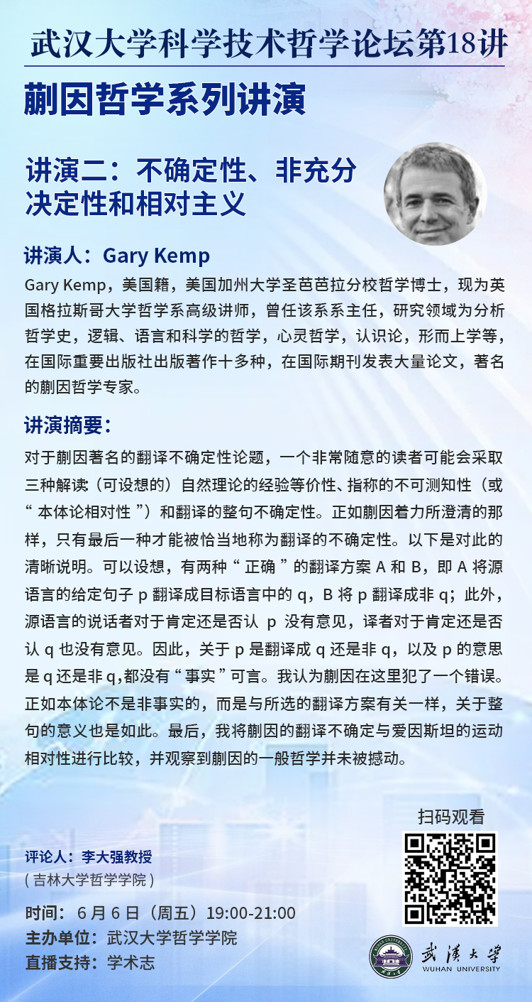 【6月6日】奈飞 科学技术哲学论坛第18讲预告 ▏蒯因哲学系列讲演二:不确定性、非充分决定性和相对主义