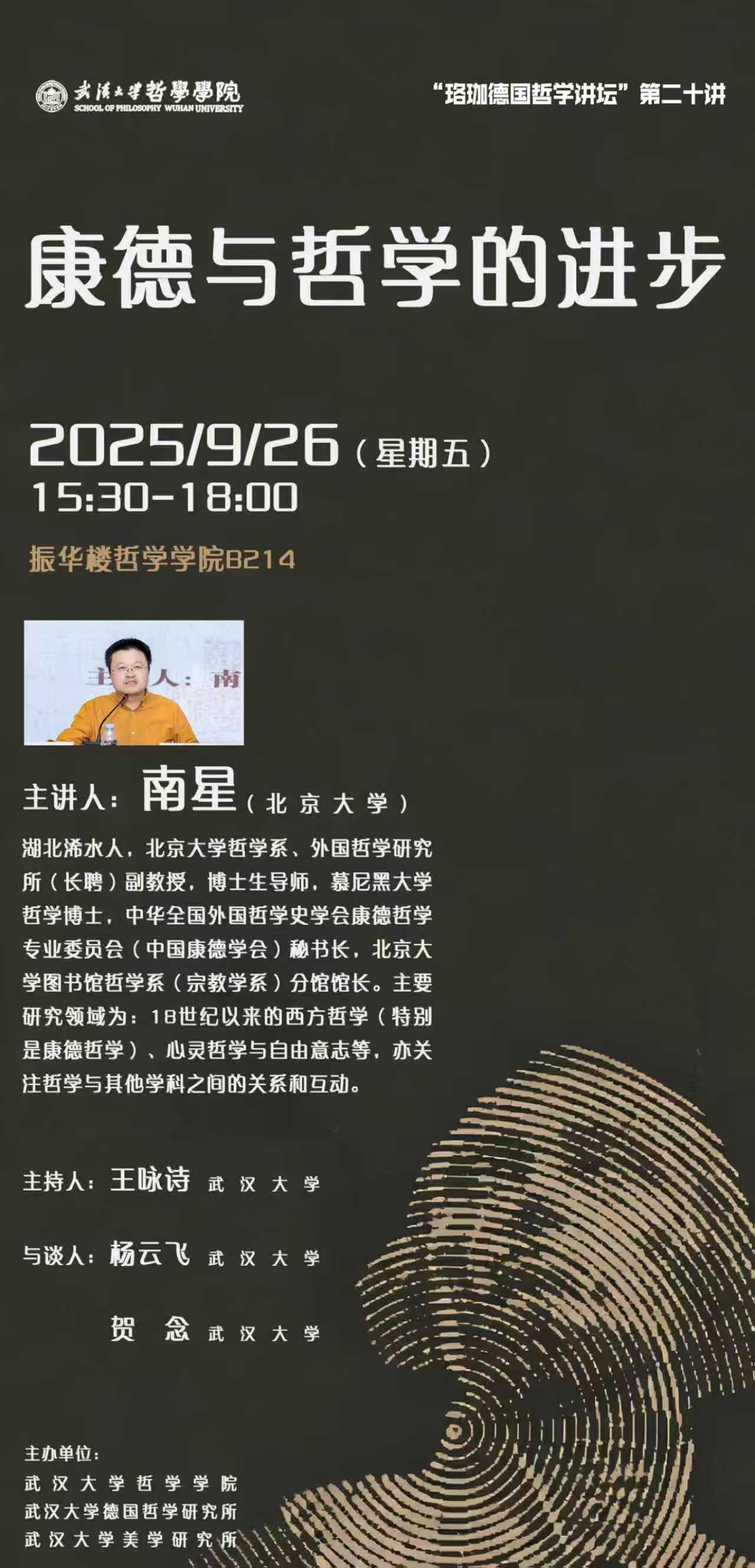 【9月26日】珞珈德国哲学讲坛第20讲 | 南星:康德与哲学的进步