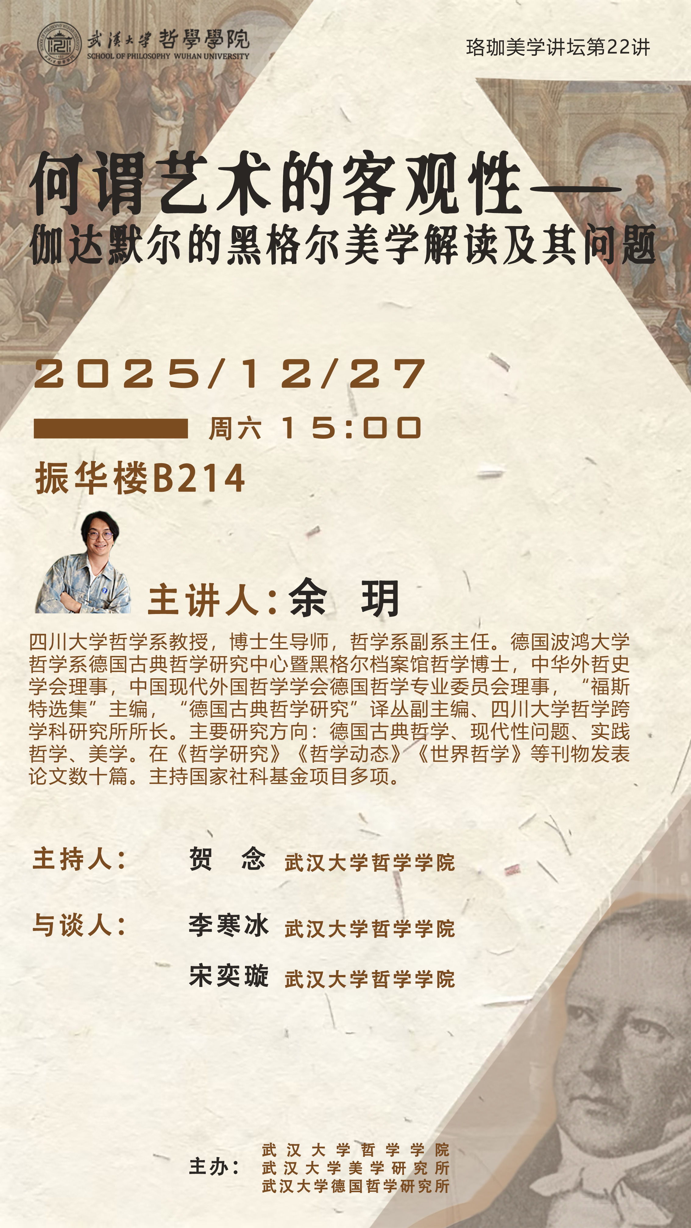 【12月27日】珞珈美学讲坛第22讲 | 余玥:何谓艺术的客观性——伽达默尔的黑格尔美学解读及其问题