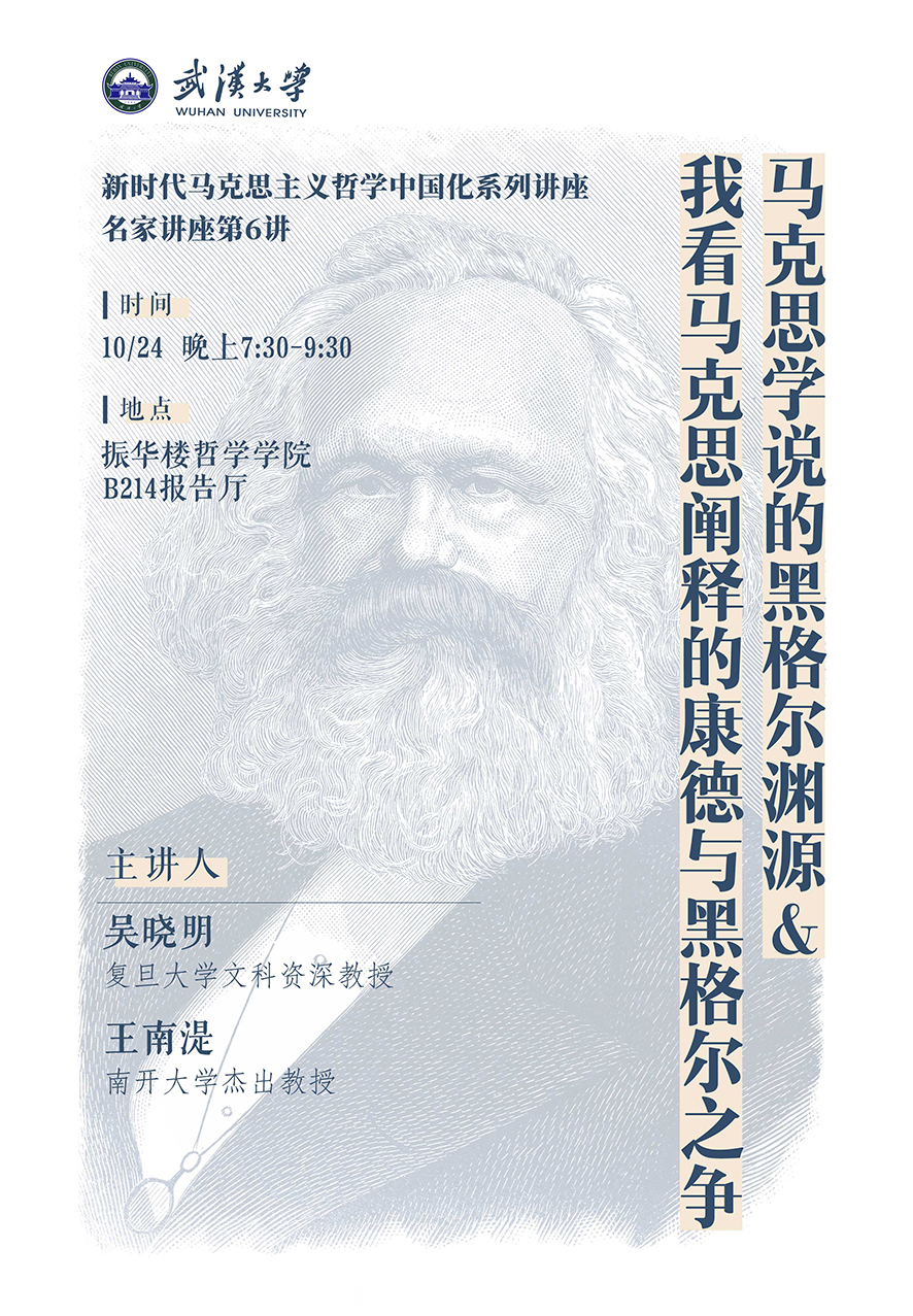 【10月24日】名家讲座第6讲:马克思学说的黑格尔渊源&我看马克思阐释的康德与黑格尔之争