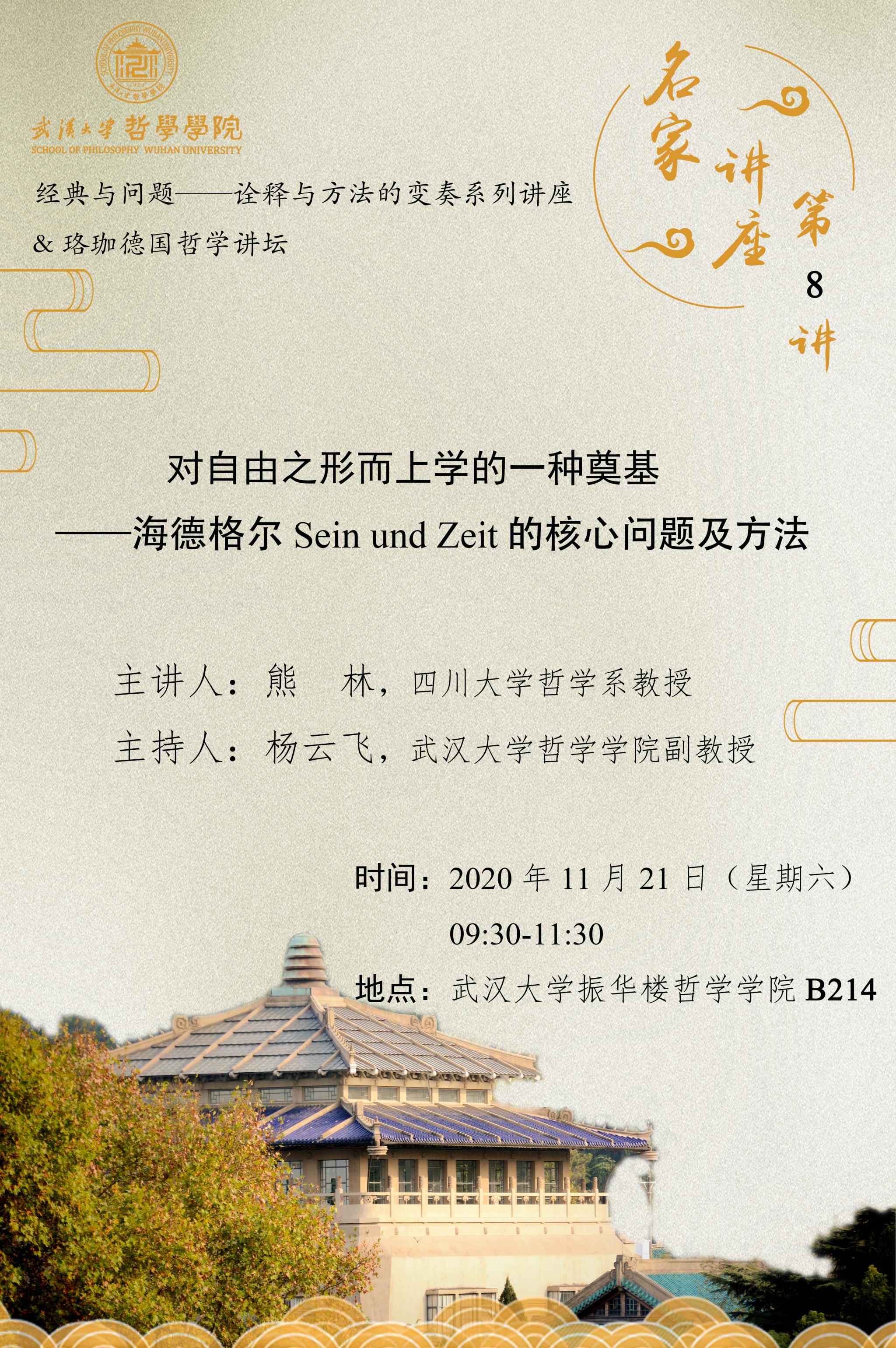 【11月21日】名家讲座第8讲:对自由之形而上学的一种奠基——海德格尔 Sein und Zeit 的核心问题及方法