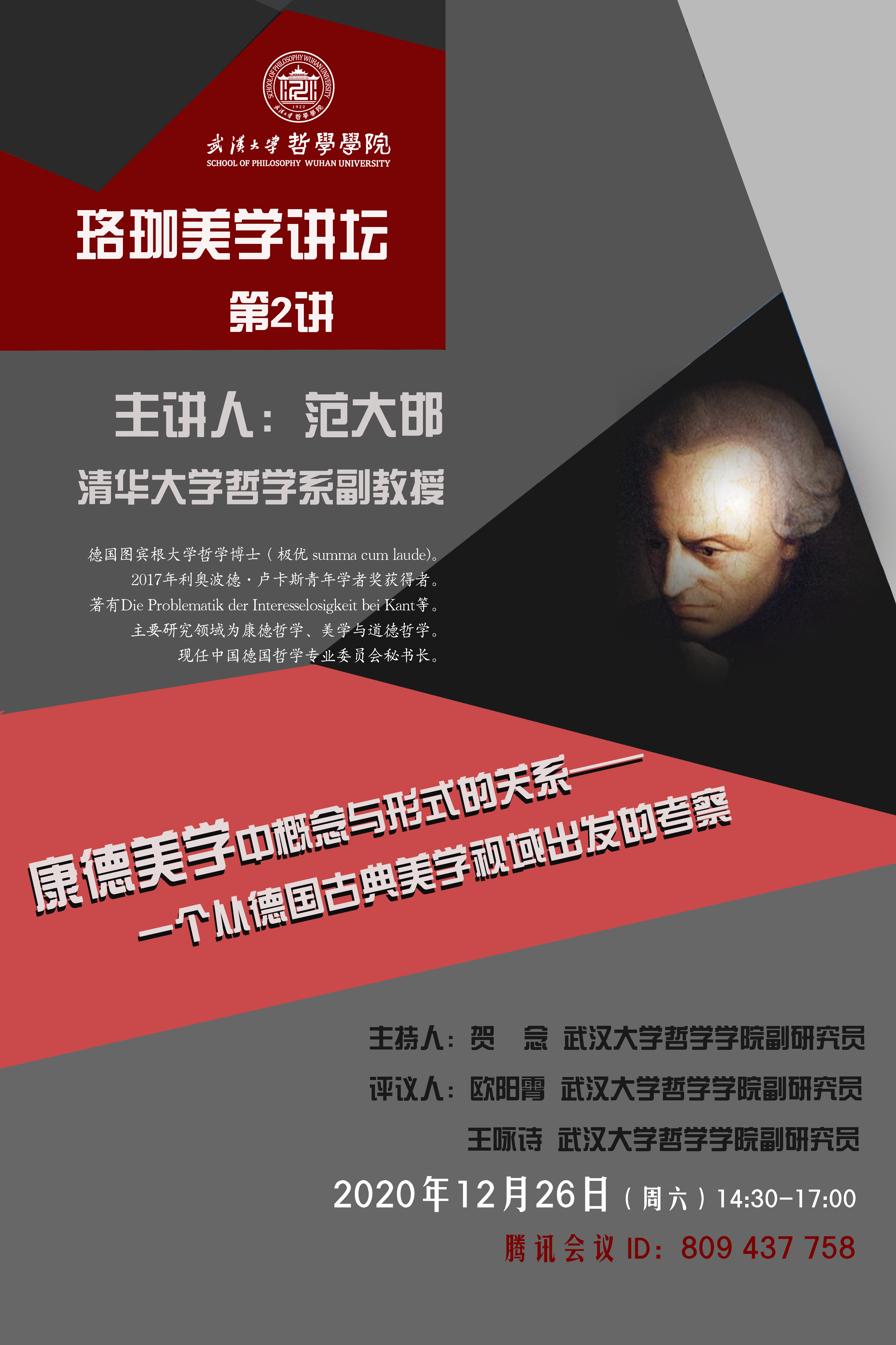 【12月26日】珞珈美学讲坛第2讲:康德美学中概念与形式的关系——一个从德国古典美学视域出发的考察