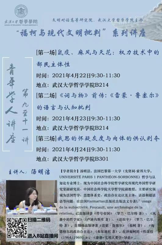 【4月22日——24日】青年学人讲座第九至十一讲:“福柯与现代文明批判”系列讲座