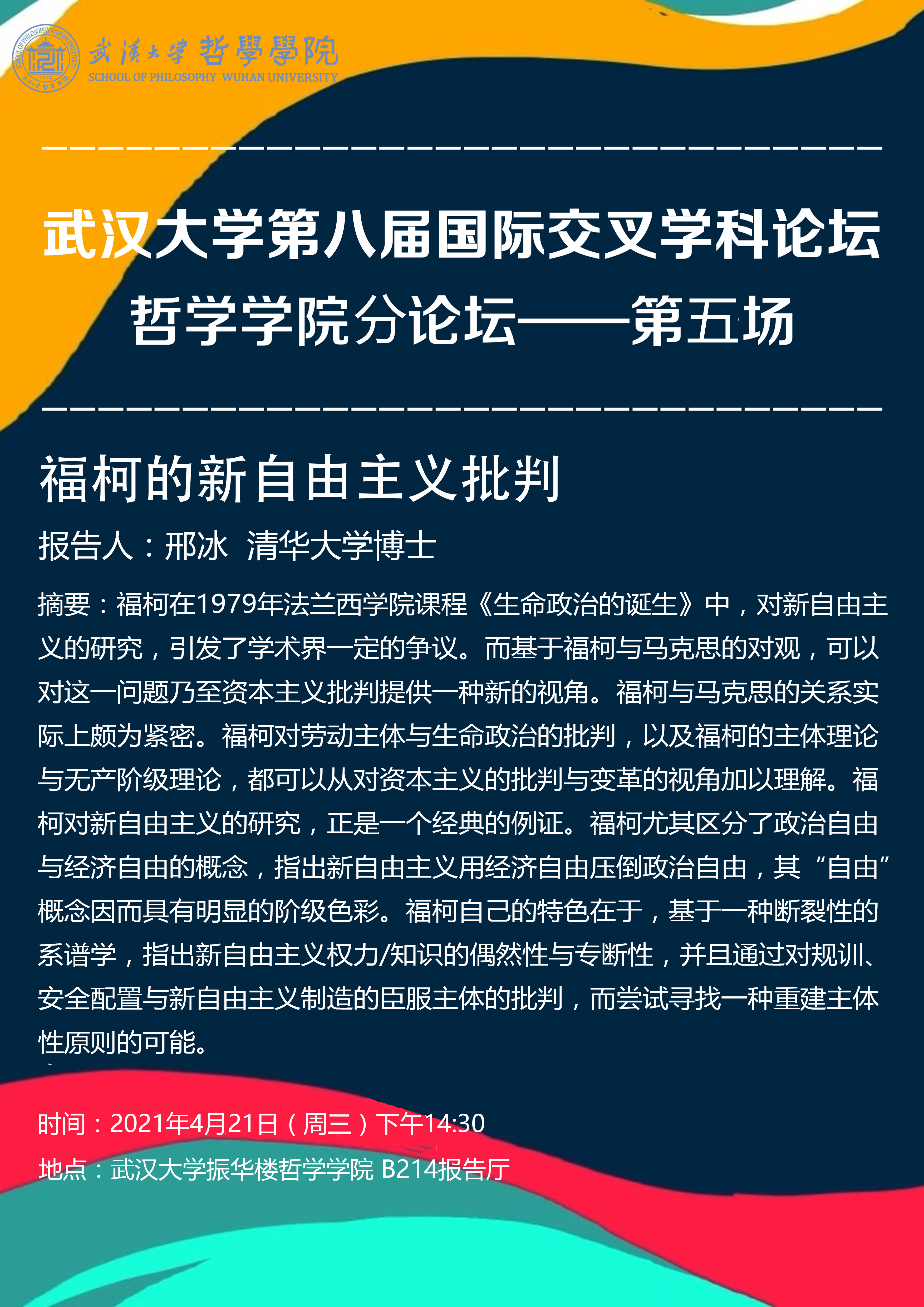 【4月21日】奈飞 第八届国际交叉学科论坛奈飞 分论坛——第五场