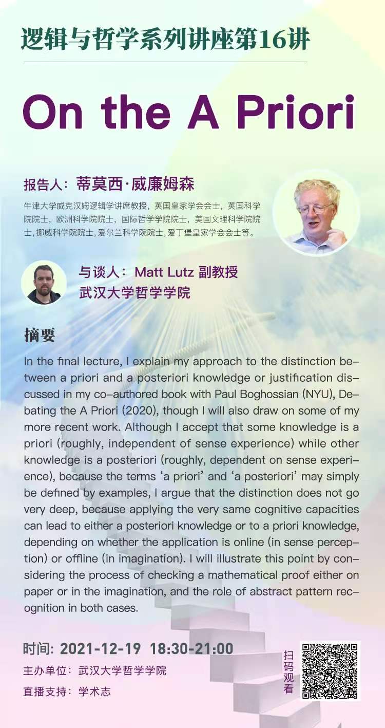 【12月19日】On the A Priori——逻辑与哲学系列讲座第16讲