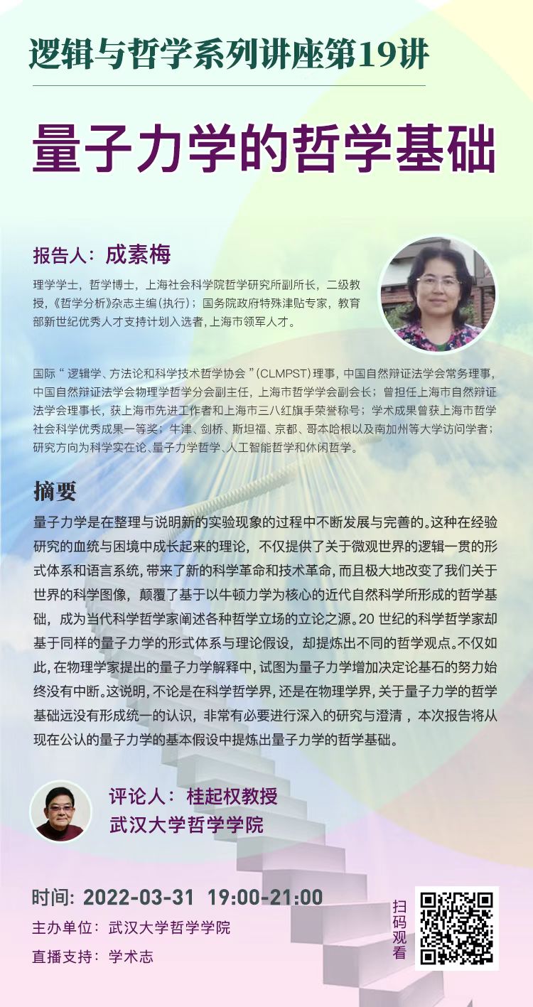 【3月31日】量子力学的哲学基础——逻辑与哲学系列讲座第19讲