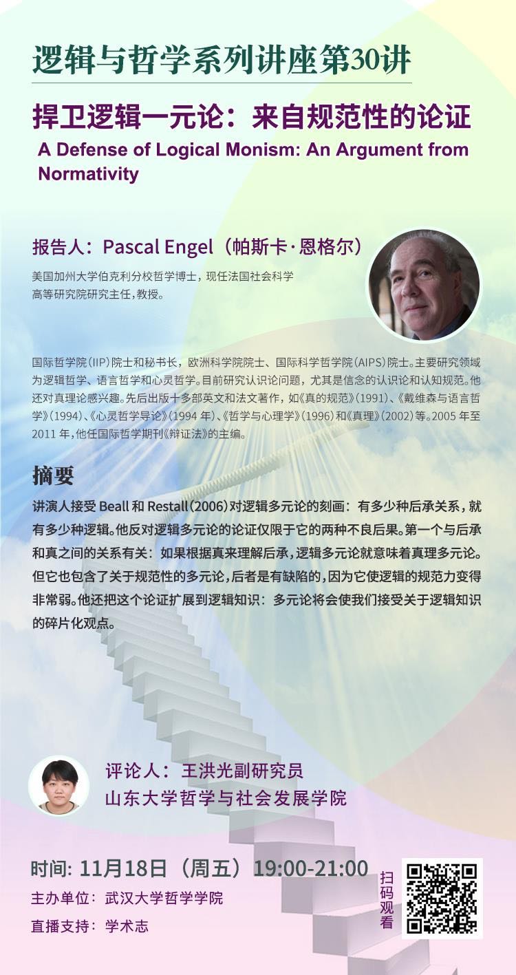 【11月18日】捍卫逻辑一元论:来自规范性的论证——逻辑与哲学系列讲座第30讲