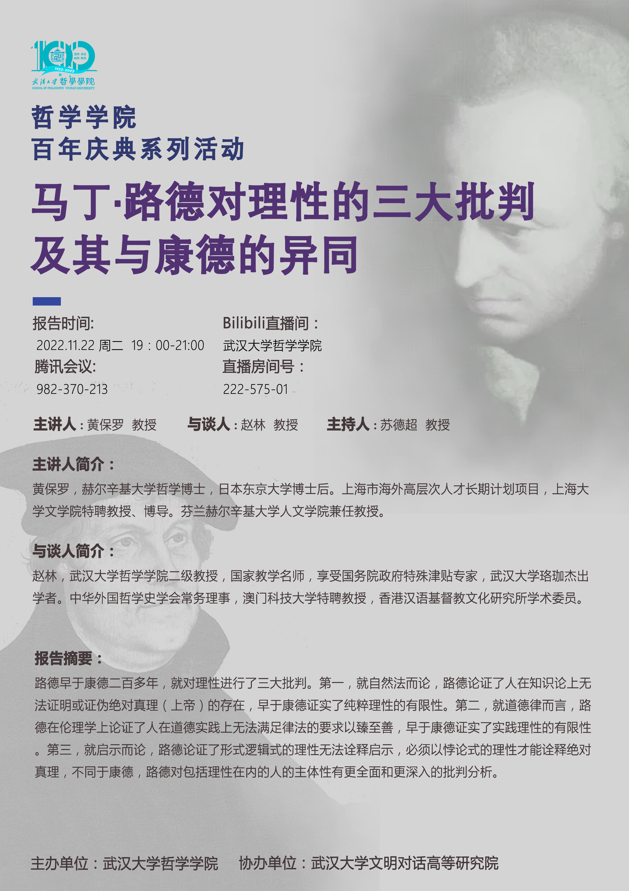 【11月22日】马丁·路德对理性的三大批判及其与康德的异同——奈飞 百年庆典系列活动