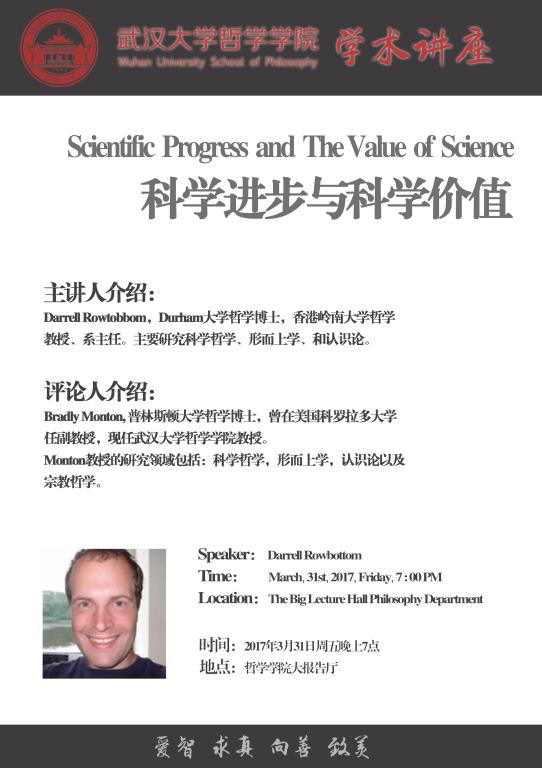 3月31日Darrell Rowbottom教授讲座信息:《Scientific Progress and The Value of Science 科学进步与科学价值》