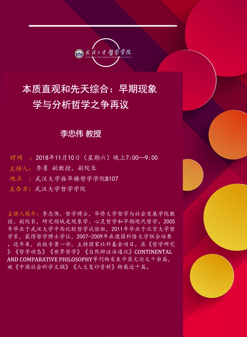 【11月10日】本质直观和先天综合:早期现象学与分析哲学之争再议