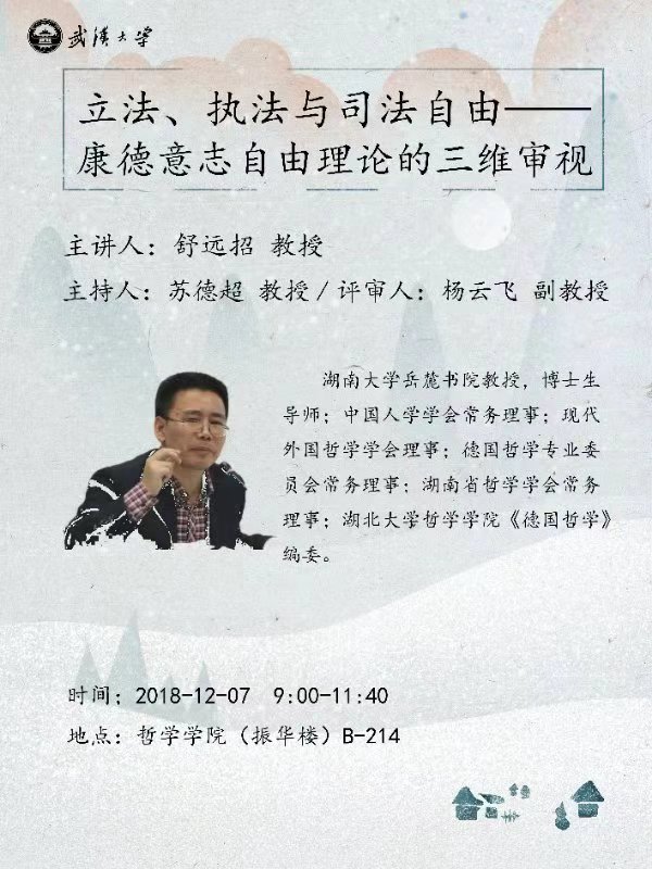 【12月7日】立法、执法与司法自由——康德意志自由理论的三维审视