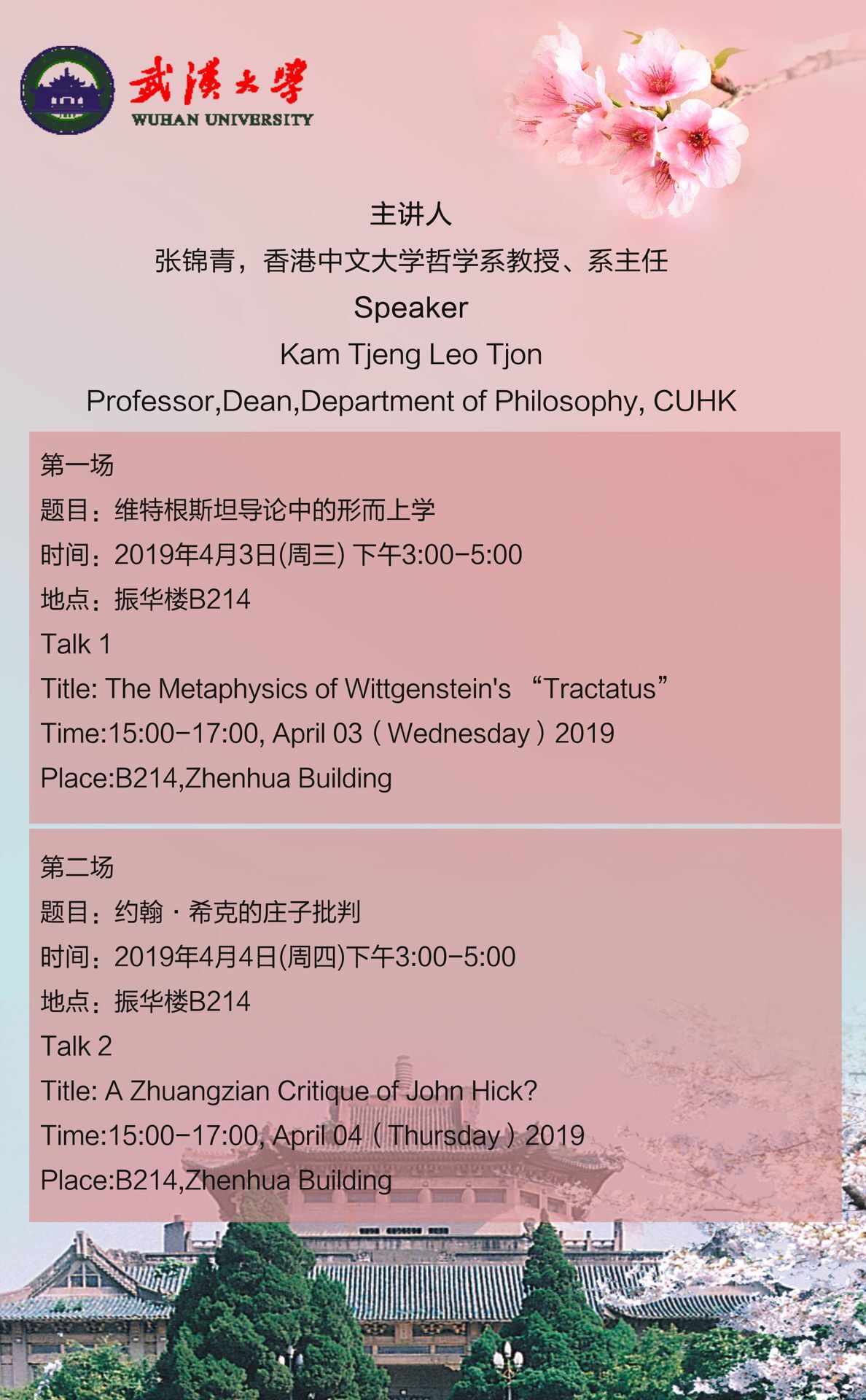 【4月3日—4日】香港中文大学张锦青教授系列讲座
