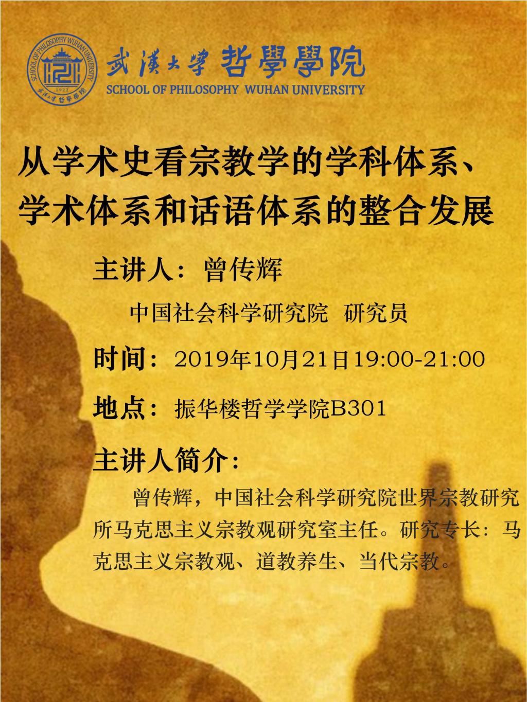 【10月21日】从学术史看宗教学的学科体系、学术体系和话语体系的整合发展