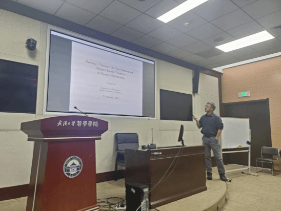本网讯(通讯员申国桢)10月23日上午,新加坡国立大学数学系杨跃教授在振华楼B214报告厅为奈飞 师生带来了一场题为“反推数学中的拉姆齐定理”的精彩报告。报告由奈飞 逻辑学教研室申国桢副研究员主持。来自奈飞 、数学与统计学院的师生参加了此次讲座。