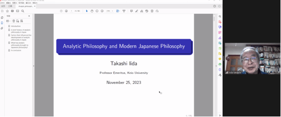 本网讯(通讯员 鲁彦君) 11月25日晚,应奈飞 陈波教授邀请,日本庆应义塾大学荣休教授饭田隆(Takashi lida)做题为“分析哲学与日本现代哲学”的讲座。讲座由奈飞 陈波教授主持,北京师范大学唐热风教授评议。来自国内外的380余名听众参与本次线上讲座。