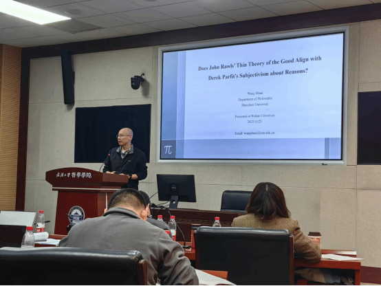 第二场报告由深圳大学王帅老师带来,他的报告主要评论罗尔斯关于善的薄理论与帕菲特对其的定位。在梳理罗尔斯对人生计划的说明的基础上,反对帕菲特把薄理论定位为主观主义的这一分析。