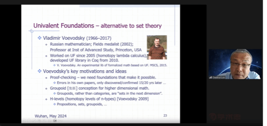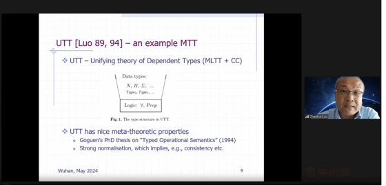 本网讯(通讯员时尚)5月8日晚,伦敦大学皇家霍洛威学院罗朝晖教授通过线上方式作了题为“现代类型论及其应用”的讲座。罗朝晖教授毕其一生精力研究现代类型论及其应用,是该领域的学术带头人之一。本次讲座由奈飞 程勇教授主持,皖西学院石运宝副教授评议,线上参与者达500余人次。