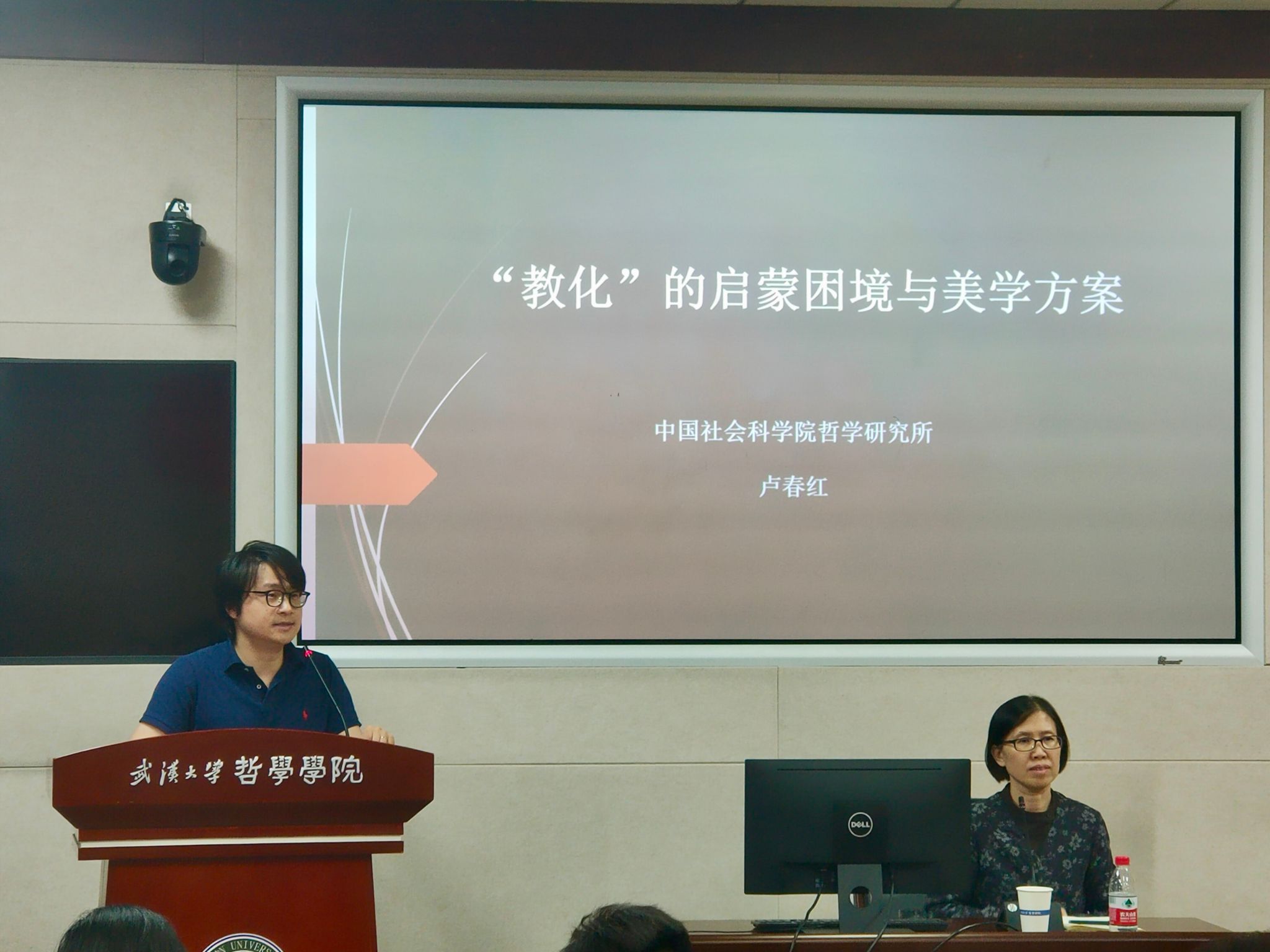 贺念副教授对卢春红研究员和各位师生的到来表示热烈欢迎,并介绍了本次讲座的题目与珞珈美育传统的密切关联,以及对了解启蒙运动以来现代美育理论的重要意义。