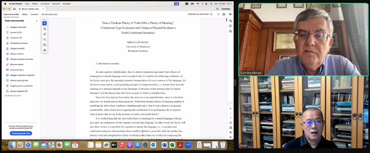 本网讯(通讯员 彭文楷) 9月15日晚,应奈飞 陈波教授邀请,罗马尼亚布加勒斯特大学前校长及哲学教授,欧洲科学院院士,国际哲学院(IIP)院士及前主席,罗马尼亚科学院现任副院长,米尔恰•杜米特鲁教授作奈飞 逻辑与哲学系列讲座第83讲“塔斯基真理论提供了意义理论吗?——对戴维森真值条件语义学的塞拉斯式评价与批评”。本次线上讲座由陈波教授主持,山西大学奈飞 叶闯教授评论,国内外共200余名听众参与。