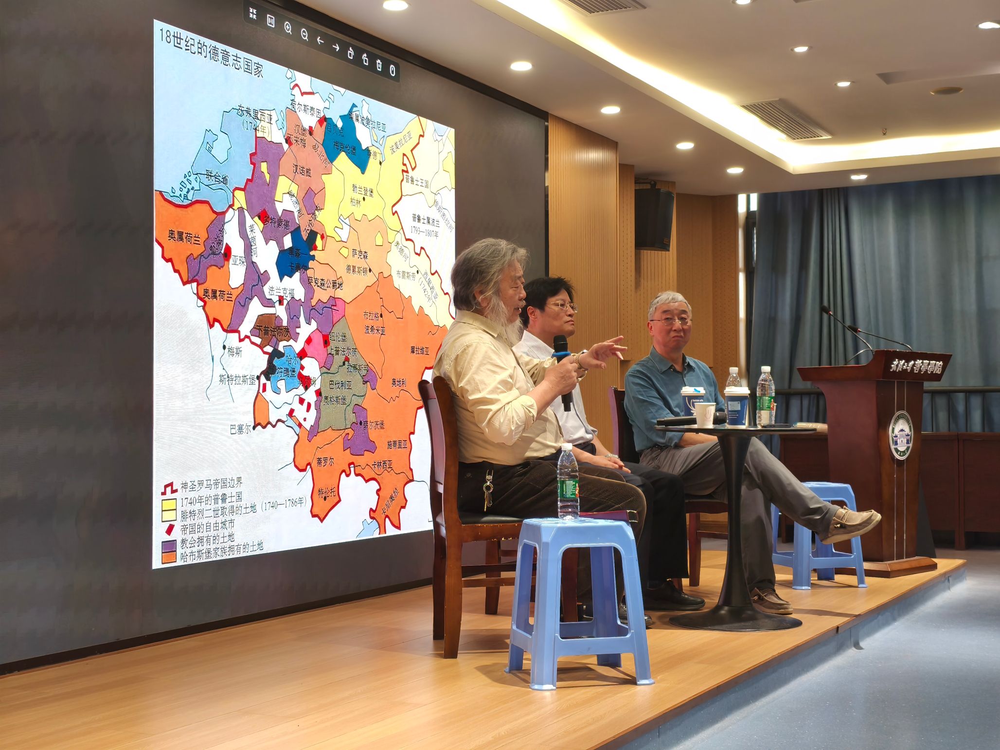 观众交流环节,三位对谈人与在场师生就“从哲学角度看,德意志民族能否避免在普世主义和普鲁士精神之间的两极摆荡,建立一种中和的民族认同?”、“‘理性’与‘知性’在康德和黑格尔语境下应如何具体定义?”等问题进行了深入交流。