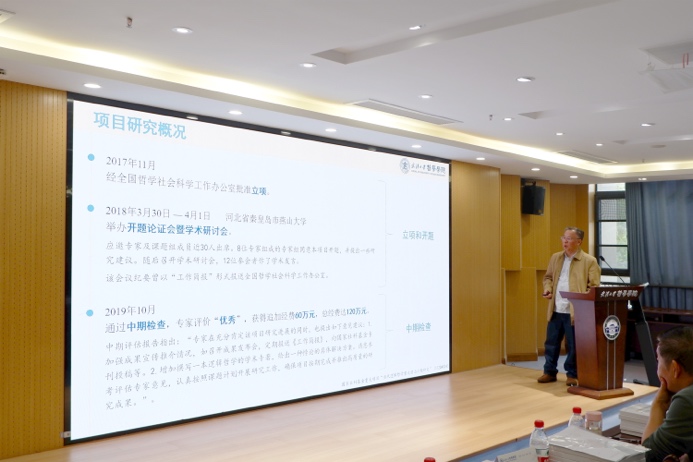 项目首席专家陈波汇报了项目研究概况以及项目在研期间取得的科研成果。“当代逻辑哲学重大前沿问题研究”2017年立项,2019年获得滚动资助。截至2024年6月,项目在研期间累计发表各项成果共计74项,其中在国际A&HCI期刊发表论文17篇(英文11篇、中文6篇),在国内C刊上发表中文论文46篇,出版中文译著2本,召开国际学术研讨会6次,举办“逻辑与哲学系列讲演”共计80余次。
