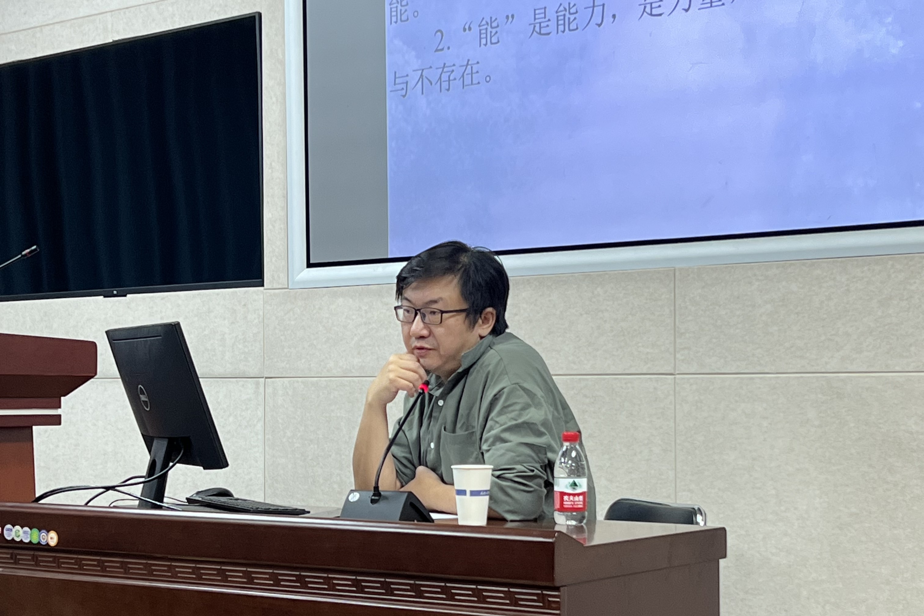 互动环节,就归伶昌老师提出的“与‘创造’概念所暗示的神外在于受造物相比,‘制作’概念如何确保神的超越性?”、“概念与外物是否分别来自‘能’的两种不同制作,这是否又导致了新的分裂?”、“库萨晚期著作中将‘能’提高到核心地位,是对中期提出的三一结构的维持还是改变?”,刘任翔老师提出的“是否可能将库萨的能在论思想推进到德勒兹的彻底性,取消同一性的有限性,让有限存在在的‘能’不被包纳入神的‘能’?”,以及在场其他师生提出的“‘能’对于‘是’的超越性与‘历史终结’之间是否存在张力?”、“库萨是否特别提及人的存在的特殊性?”、“‘能’能否被赋予物和自然?”、“库萨如何看待‘是’与‘无’之间的关系?”等问题,雷思温副教授与在场师生进行了深入交流。