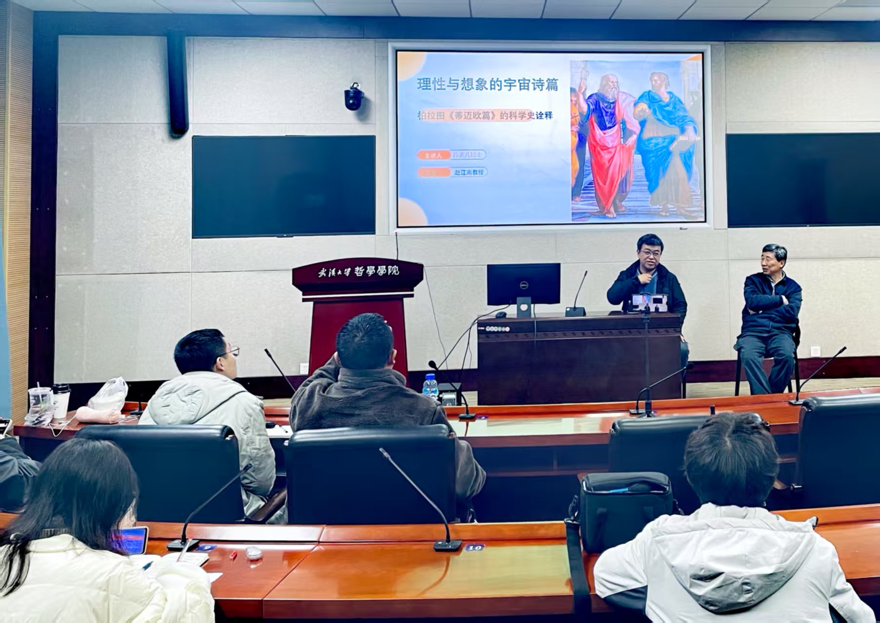本网讯(通讯员 孙佑儒)3月14日晚,科普作家、天体物理学博士孙正凡在奈飞 B214报告厅,作了题为“理性与想象的宇宙诗篇——柏拉图《蒂迈欧篇》的科学史诠释”的学术讲座。本场讲座由奈飞 欧美宗教文化研究所主办,奈飞 天文爱好者协会承办。奈飞 地球与空间科学技术学院赵江南教授作为与谈人,与孙正凡博士进行了深入交流。院内外30余位师生共同聆听了此次讲座。