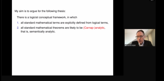 然而,Leitgeb教授指出他对卡尔纳普的逻辑主义的兴趣并不是纯粹历史的,相反,他关心的乃是数学哲学。这场讲座的主要目的是论证一种拟卡尔纳普逻辑主义的数学哲学,该观点断言:存在一种逻辑主义的概念框架使得