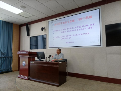 陈金清编审分析了综合性期刊与专业性期刊在选题要求上的不同,并为同学们介绍了国内核心期刊的分类、影响力评估方式以及期刊的审稿过程。他结合在《江汉论坛》杂志的工作实际,从五个方面谈了自己的看法:一是综合性期刊论文选题应当关注当代理论与实践中的重大问题,但要做实,切忌空洞;二是写文章要注意思想和观点的创新;三是分析论证时要注意逻辑的严密性;四是要注意语言表达的简要精炼;五是要注重学术规范。此外,他还结合自己的抗疫期间的阅读经历,鼓励同学们多阅读与专业相关的经典原著并做好读书笔记,这是写论文的前提和基础。