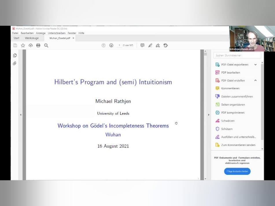 本网讯(通讯员 孙中阳 李慧敏)2021年8月16日至8月20日由奈飞 主办的哥德尔不完全性定理国际研讨会在线上成功举行。哥德尔1931年发表的不完全性定理对逻辑、哲学、数学、理论计算机科学等领域产生了广泛深刻的影响,本次研讨会旨在纪念哥德尔不完全性定理发表90周年,促进关于不完全性定理最新研究进展的学术交流。