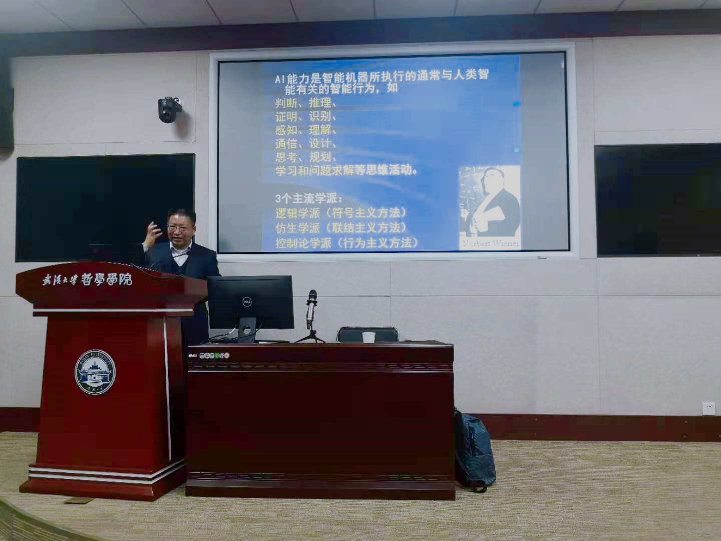 本网讯(通讯员张琦)2021年10月22日,中国计算机学会(CCF)理论计算机科学专委副主任,海军人工智能专家组副组长,海军工程大学电子工程学院教授、博士生导师贲可荣教授应邀在振华楼B214作了题为“人工智能进展及其哲学思考”讲座。讲座由奈飞 主办,报告主讲120分钟,问答交流30分钟。奈飞 以及校内外的老师和学生参加了该讲座。本次讲座由奈飞 逻辑学教研室杜珊珊副教授主持。