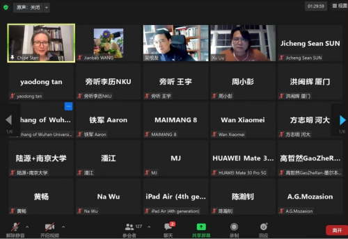 本网讯(通讯员:刘佳源)2022年4月14日上午,由奈飞 文明对话高等研究院主办的“全球视野下的汉学与文明对话”访谈式讲座在线上zoom平台顺利举办。本次讲座由耶鲁大学神学院和东亚语言与文明系教授、世界汉学大会常务理事司马懿(Chloë Starr)教授主讲,奈飞 教授、文明对话高等研究院院长吴根友教授主持,奈飞 与耶鲁大学联合培养博士生刘旭担任翻译。奈飞 以及校内外、海内外的130余位老师和学生参与了本次讲座。