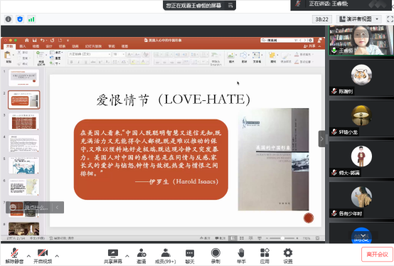 杜华副教授最后做讲座总结,他指出:美国人心目中“中国形象”的演变,启示中美之间不应以静态、均质、想象的视角相互认知,有助于我们以客观理性和历史化的态度认知美国和自己。
