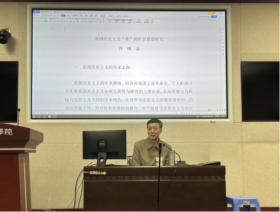 乔瑞金教授从英国历史学家加入科学社会主义讨论的历史背景讲起,介绍了英国历史主义以唤醒工人阶级意识、实现英国社会主义作为学术群体的共同志向,基于英国工业革命史和工人阶级斗争史,揭示了工人阶级在社会主义革命的独特品格,并将工人革命上升为社会革命,赋予工人阶级成为社会发展的动力、成为社会政治力量的政治使命。乔瑞金教授着重解读了英国马克思主义历史学家E·P·汤普森的著作《英国工人阶级的形成》是对恩格斯《英国工人阶级的状况》的续写,反驳了当时许多学者受第二国际决定论思想和苏联教条化马克思主义等影响造成的对工人阶级品格的误解,提出了英国工人阶级具有自由、激进的阶级意识,能够通过微观革命的政治斗争和经济斗争获得解放,从而构建起“善”的社会。乔瑞金教授强调,与传统马克思主义注重政治和经济批判的理论倾向不同,历史学派从整体上表现为一种文化取向,即进行大众文化批判,关注下层民众意识形态领域的理论构建。乔瑞金教授回应了一些学者对于英国新马克思主义忽视经济基础的质疑,认为汤普森在提出阶级意识(觉悟)范畴的同时,也提出了阶级经历的概念,将抽象的阶级概念转换为现实的人的状况的表达,并未忽视经济结构和生产关系对工人阶级的影响。最后,乔瑞金教授总结到,英国新马克思主义的实质是马克思主义同英国历史进程相融合所形成的的对于英国未来社会理路的基本预设,是在坚持马克思主义传统和工人阶级立场基础上探寻英国历史发展规律的积极尝试,对马克思主义中国化和中国特色社会主义现代化建设有十分宝贵的借鉴意义。